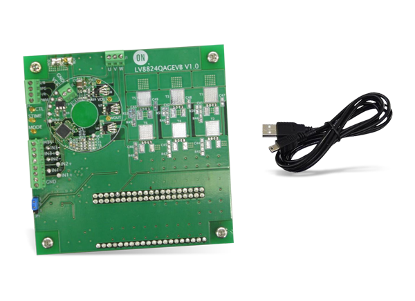 - Includes the LV8824QAGEVK with on-board microcontroller circuit (daughterboard) and USB drive